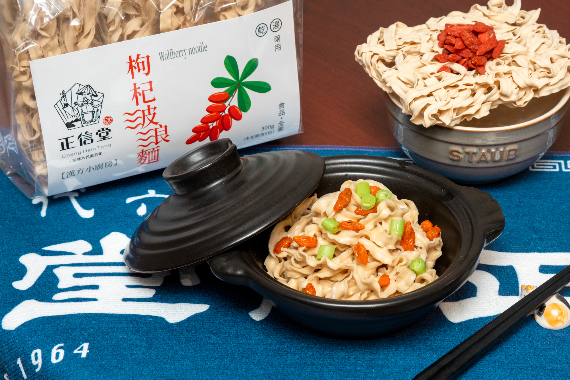 「枸杞波浪麵」:枸杞加入波浪麵中,嘗起來有枸杞香氣和甜味,大人小孩都愛。